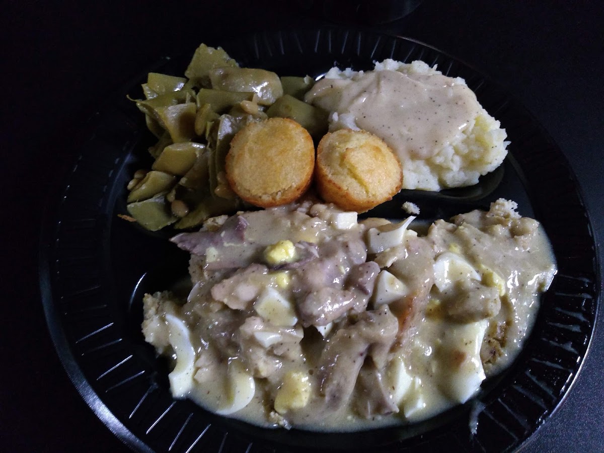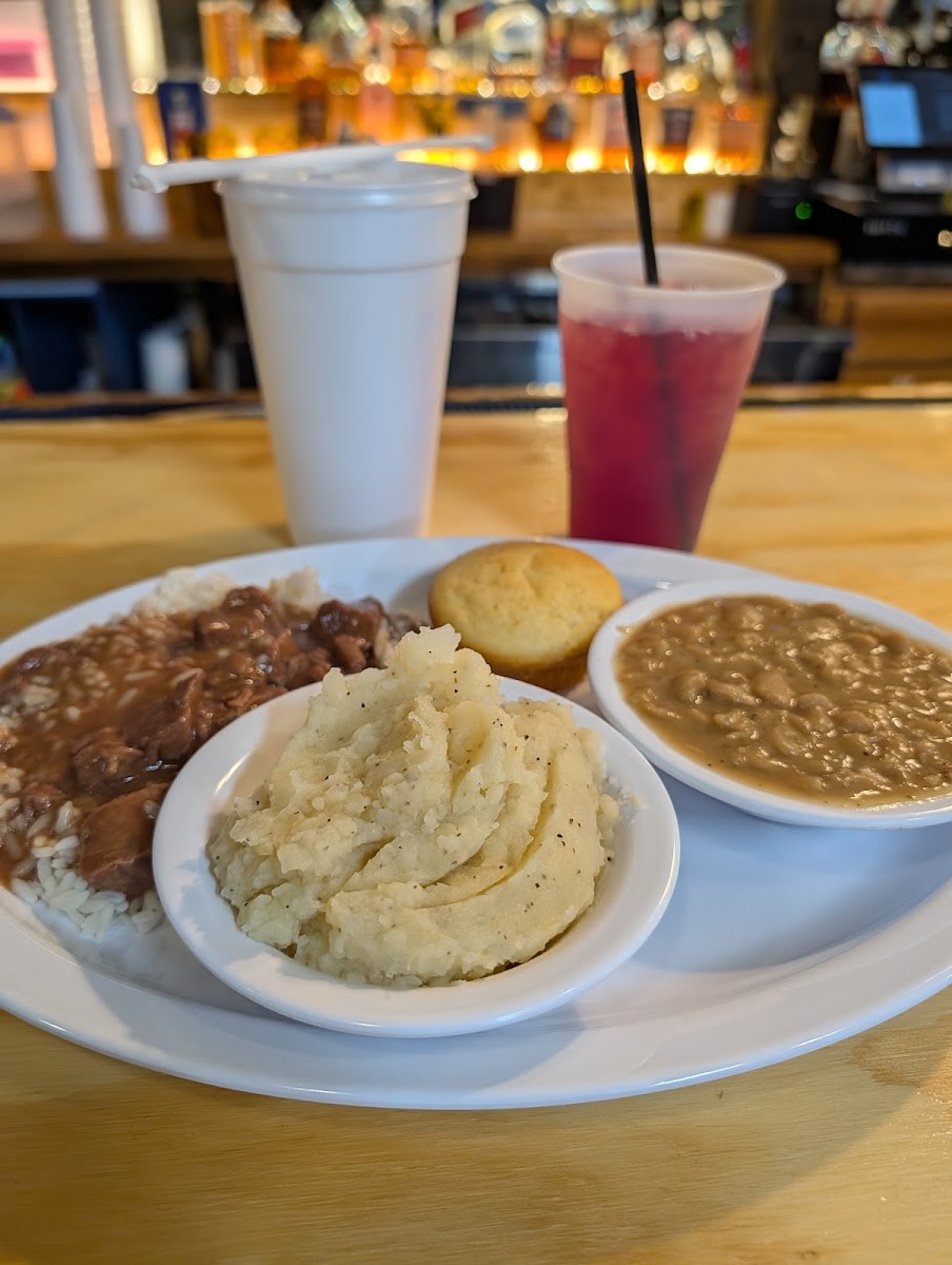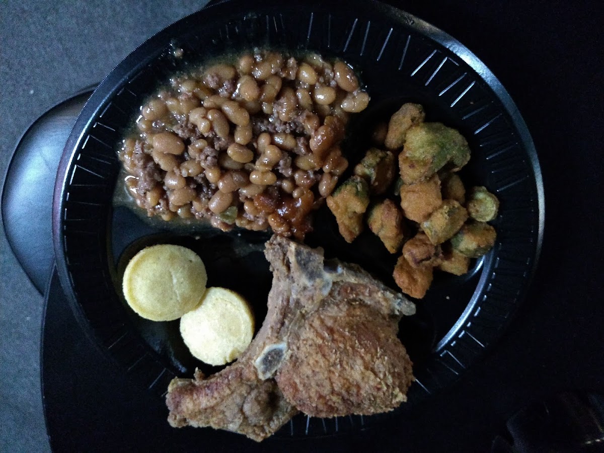 First time... hear alot of things about the food... so first impression walking in was the in the face odor of cigarettes.. was not expecting that .. no windows - ventilation to air it out It is actually a bar... Food was ok.. not any different from what you cook at home... except the cornbread....cornbread was burnt on bottom and was not even browned on top...